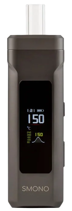 El Smono Jadoo es un vaporizador híbrido de gama media que alcanza hasta 240 °C — uno de los máximos más altos de la gama Smono. Batería de 2.600 mAh, 150 g, 35 segundos de calentamiento. Garantía 2 años. Sin pipa de agua ni cápsulas.