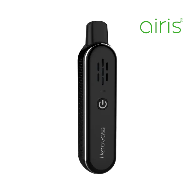 The Airistech Herbva 5G is a portable dry herb vaporizer with a conduction heating chamber and OLED display. It heats to your chosen temperature in about 30 seconds with precise degree-by-degree control.